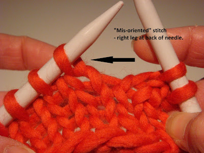 How to compensate for mis-oriented stitches? Knit them through the back loop!